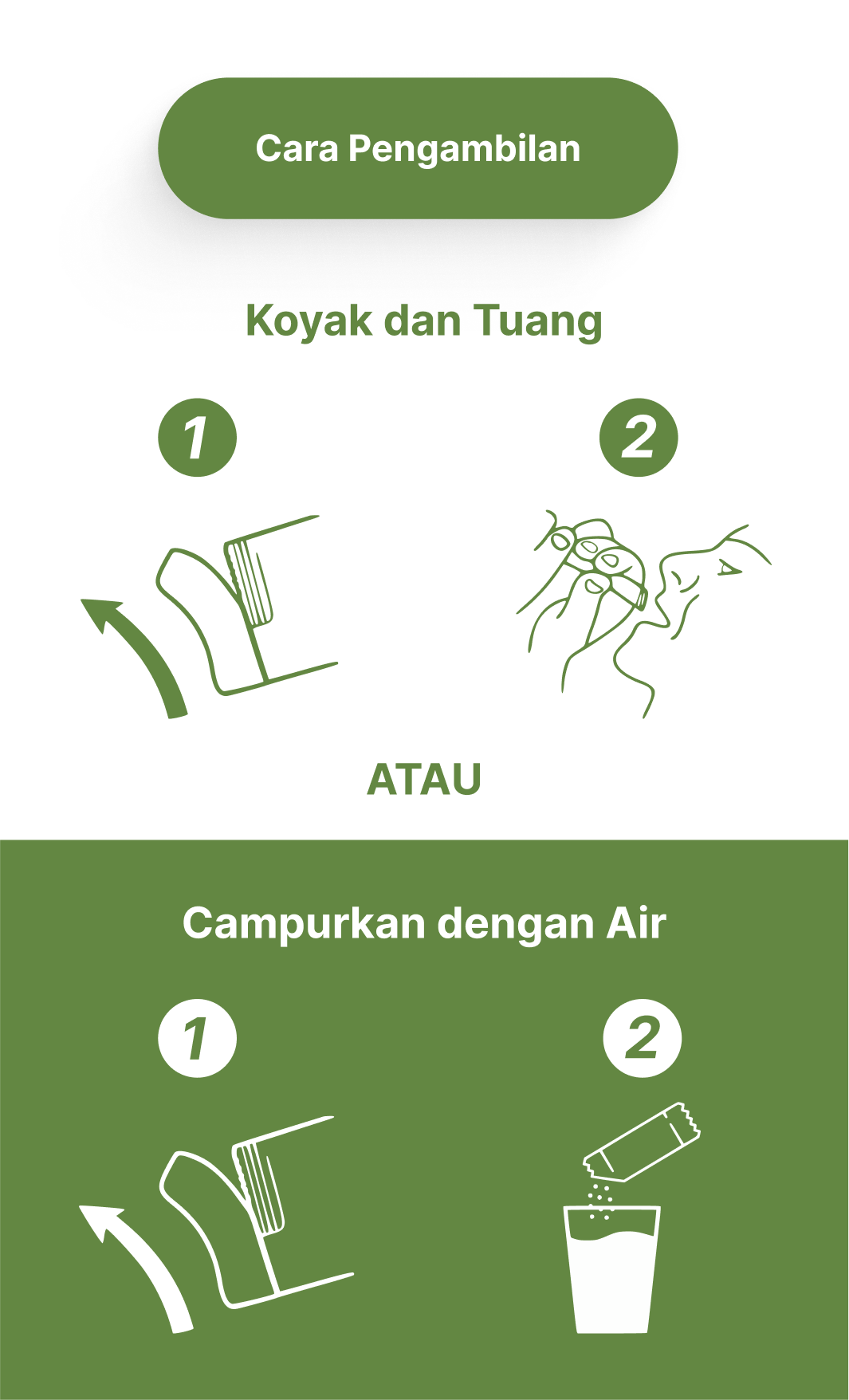 Untuk kesan yang paling optimum, amalkan 2 sachet sehari selepas/sebelum makan.